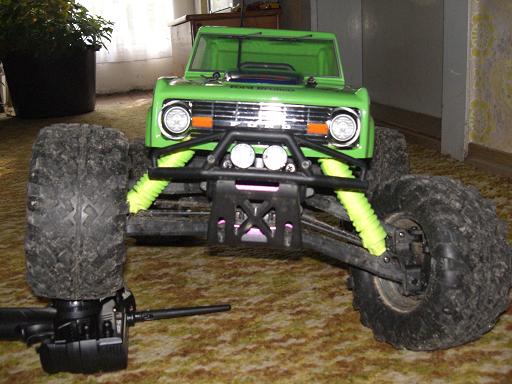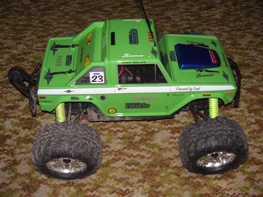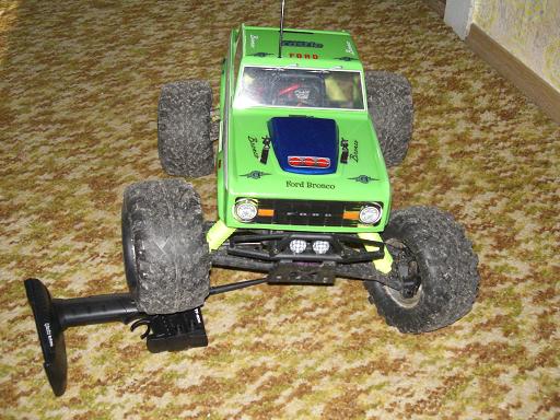 Was ich noch übel finde sind die Originalreifen von HPI, sowas schwammiges hatte ich bisher noch nie gefahren. Sind vielleicht zu Crawlen toll... Hatte aber noch 170x85er Reifen mit Treckerprofil die ich mal fürn Raptor gekauft hab über, mußte nur die kleineren beiliegenden Mitnehmer verwenden und bisher halten die Einwandfrei. Die Originalen Felgen vom Raptor waren so ein weiches Glump, und bei denen war der Sechskant gleich rund, was ich aber mit 2 seitlichen Madenschrauben (in den Mitnehmern) als zusätzliche Mitnehmer gelöst habe. Mu?te nur an den Felgen 2 Nuten reindremeln, und schon gehen die Runden die ich fast weggeworfen hätte auch wieder.