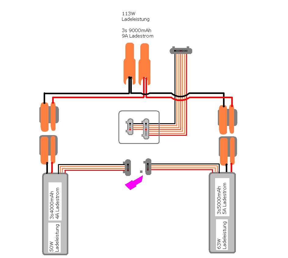 Paraleles Laden zweier oder mehrerer Lipos mit gleichen Zellenanzahl.