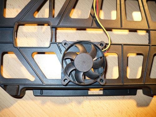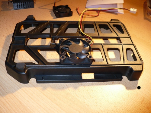 Ich habe mir mal nen Kopf gemacht, wie man das Hitzeproblem in den Griff bekommen kann. Dazu habe ich mal nen 5 cm Lüfter einfach auf das Oberteil gelegt.