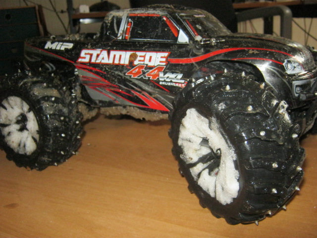 Heute bei kaltem Wetter an 4s ein paar krasse Jumps gemacht. Stampede hat alles locker weggeseteckt. |