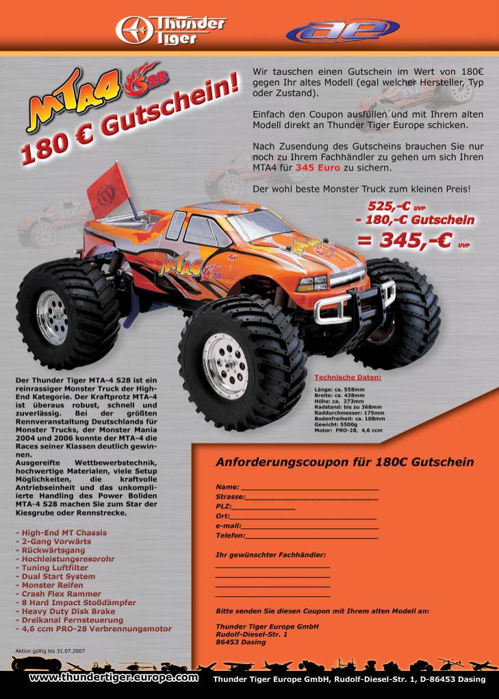 Verfasst am: 14.03.2007, 20:00 • Titel: Re: ThunderTiger - interessantes Angebot für Monstertrucklie |