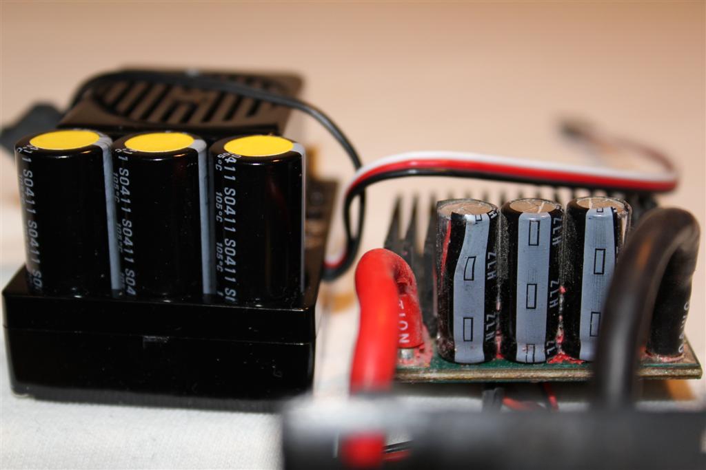 Wenn ich das richtig lese hat der 3 x 35V 1500 uF Elkos, der Mamba hat 3 x 35 V 390 uF, da verwundert es nicht wenn die Kondis grösser sind Wink